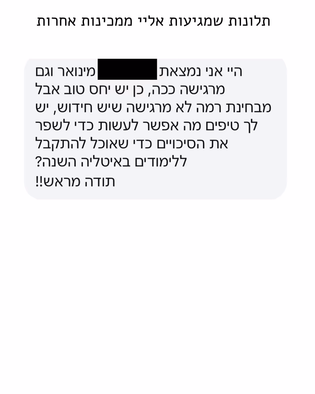 למי שמעדיף להישאר באזור הנוחות גם אם הוא כואב אם טוב לך להמשיך להאמין שאתה “לא מספיק חכם”, או שלימודים בחו״ל הם “לא בשבילך”… שום מכינה לא תעזור עד שלא תחליט לצאת מאזור הנוחות שלך.